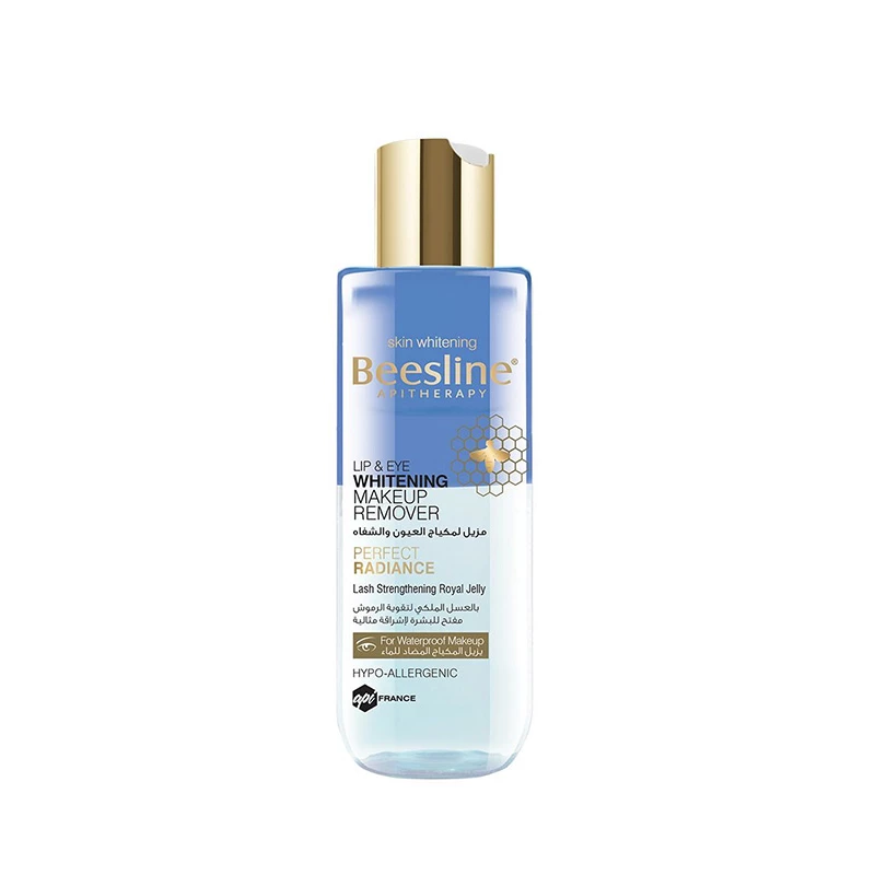 Beesline Lip & Eye Whitening Makeup Remover is a biphasic formula designed to effectively remove waterproof and long-lasting makeup. Enriched with nourishing ingredients like royal jelly and vitamin B3, it also targets dark circles for a brighter complexion. Ideal for sensitive areas, this makeup remover leaves the skin feeling refreshed and luminous.
