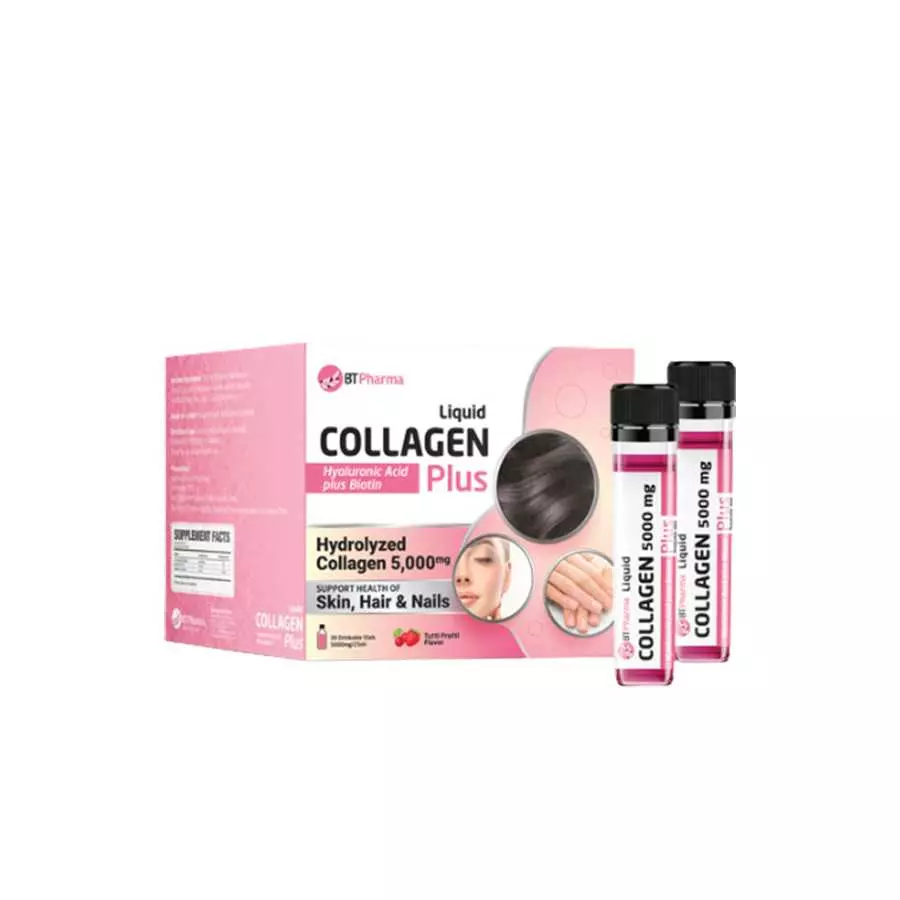 بي تي فارما ليكويد كولاجين بلس 5,000 ملغ يدعم مرونة البشرة وصحة المفاصل والحيوية العامة بتركيبة كولاجين سائلة مركزة.