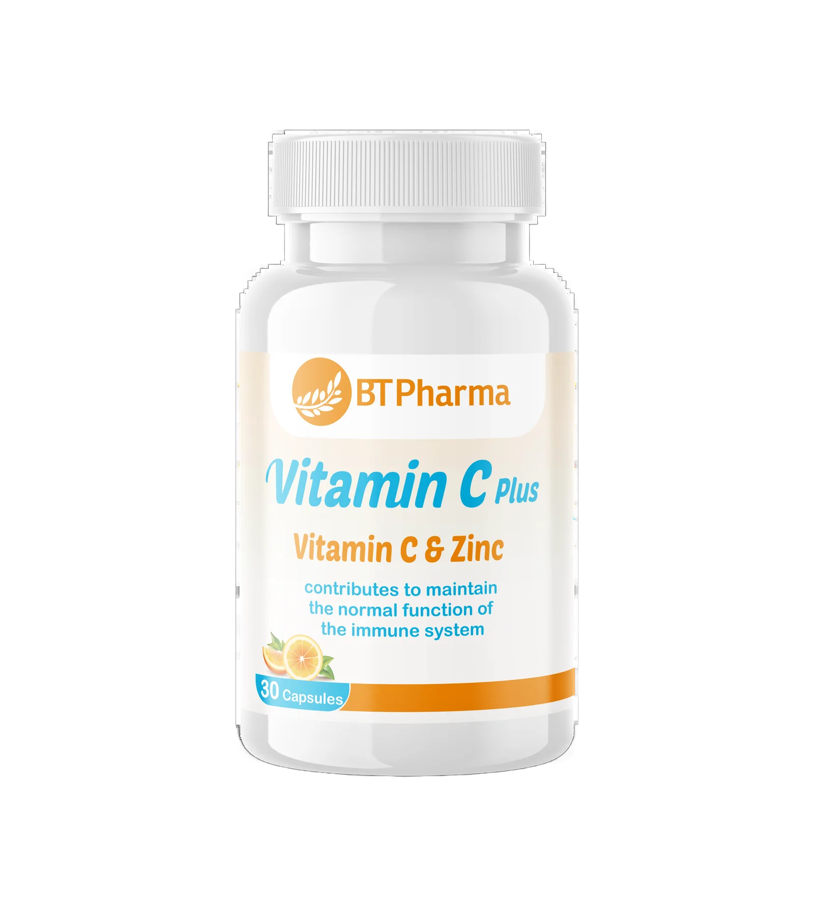 BT Pharma Vitamin C Plus 500 mg 30 Capsules is a dietary supplement designed to bolster immune function and enhance overall health. Each capsule delivers 500 mg of Vitamin C (Ascorbic Acid) and 10 mg of Zinc, two essential nutrients known for their immune-boosting properties. This formulation not only supports immune health but also plays a crucial role in energy metabolism and improving iron absorption, making it a versatile addition to daily wellness routines. Suitable for adults and children aged 9 years and older, it provides a convenient way to ensure adequate intake of these vital nutrients. The product is particularly beneficial during times of increased physical stress or seasonal changes when the body’s demand for these nutrients may be higher. With its easy-to-swallow capsule form, BT Pharma Vitamin C Plus offers a practical solution for maintaining optimal health and vitality.