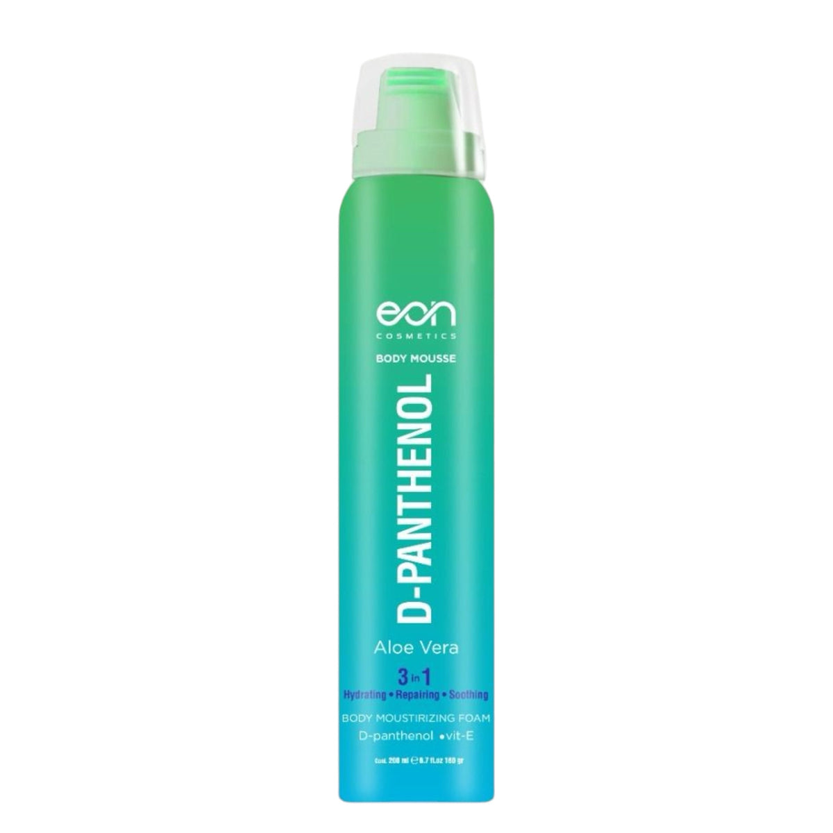 Eon Body Mousse D-Panthenol Aloe Vera is a luxurious body mousse that combines the hydrating properties of 1% D-Panthenol (Provitamin B5) and Vitamin E to nourish and rejuvenate the skin. This innovative mousse features a lightweight foam texture that absorbs rapidly, providing deep hydration without leaving any greasy residue. Perfect for daily application, it enhances skin elasticity and supports natural skin repair, making it suitable for all skin types, including sensitive skin. The soothing properties of Aloe Vera further enhance its moisturizing benefits, ensuring your skin feels soft and revitalized. Ideal for those seeking a quick and effective skincare solution, this mousse can easily be incorporated into any skincare routine for lasting hydration and comfort.