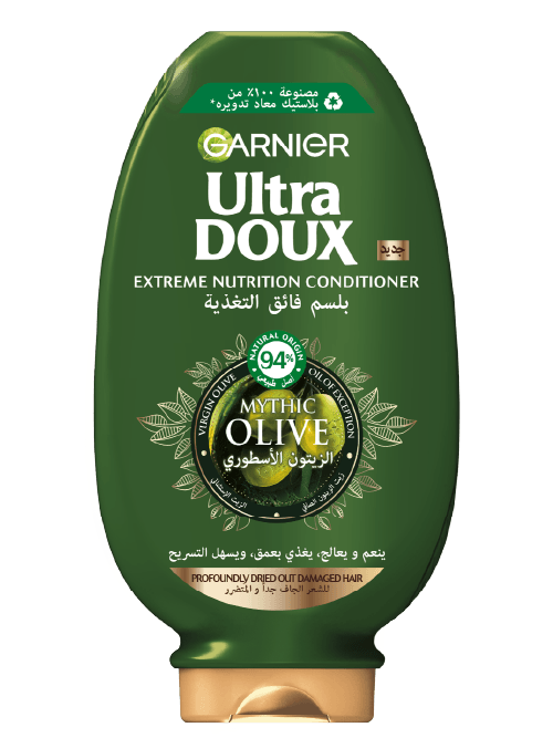 The Garnier Ultra Doux Mythic Olive Conditioner is a nourishing formula enriched with virgin olive oil, designed to repair and hydrate dry, damaged hair. This 360ml conditioner restores moisture and smoothness, leaving your hair soft and radiant. Ideal for daily use, it enhances hair strength and overall health.
