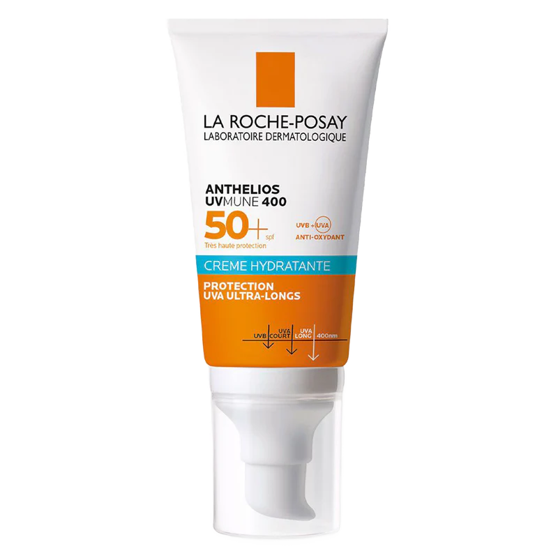 كريم لاروش بوزيه أنثيليوس UVMUNE 400 المرطب SPF50 (50مل) يوفر حماية قصوى ضد أشعة UVA وUVB والأشعة الطويلة جدًا، بتركيبة مرطبة غير دهنية مثالية للبشرة العادية والجافة.
