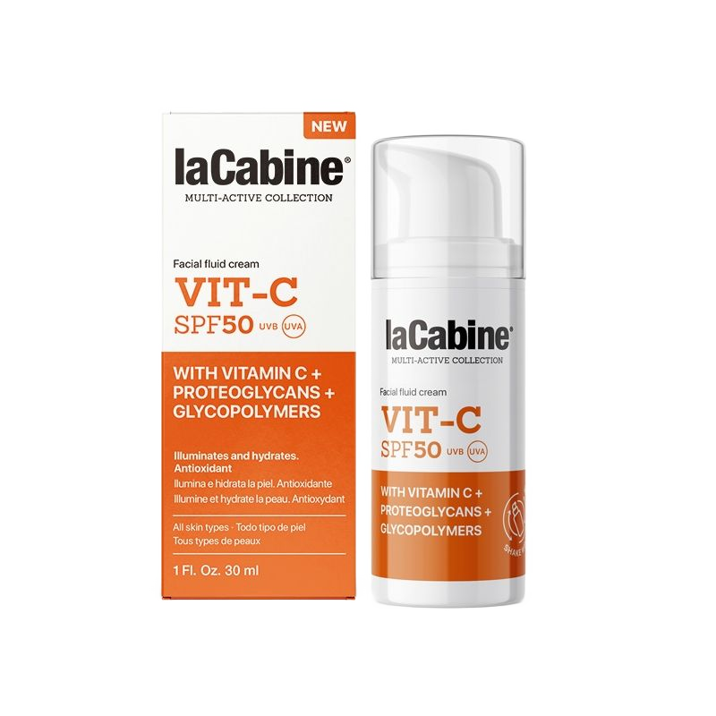 Lacabine Vit-C SPF 50 Fluid Facial Cream is a lightweight, fast-absorbing formula that brightens, hydrates, and protects the skin with stabilized Vitamin C and high SPF 50. Ideal for daily use on all skin types.