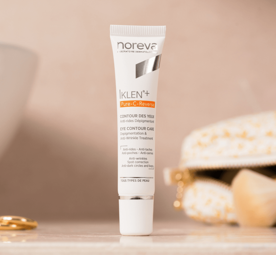 Noreva IKLEN+ Pure-C-Reverse Eye Contour Care is designed to brighten and rejuvenate the eye area. Enriched with stabilized Vitamin C, hyaluronic acid, and Vitamin PP, it effectively combats signs of aging and reduces hyperpigmentation. This lightweight formula helps diminish puffiness, dark circles, and crow's feet for a refreshed appearance.