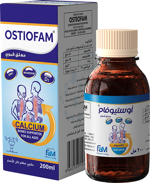 شراب أوستيوفام 200 مل هو شراب لتعزيز قوة العظام مصمم لدعم صحة العظام لجميع الأعمار. يحتوي على معادن أساسية مثل الكالسيوم والمغنيسيوم والزنك، بالإضافة إلى فيتامين د3، وهو خالٍ من الكحول واللاكتوز والجلوتين. مما يجعله خيارًا ممتازًا للأفراد الذين لديهم قيود غذائية محددة.