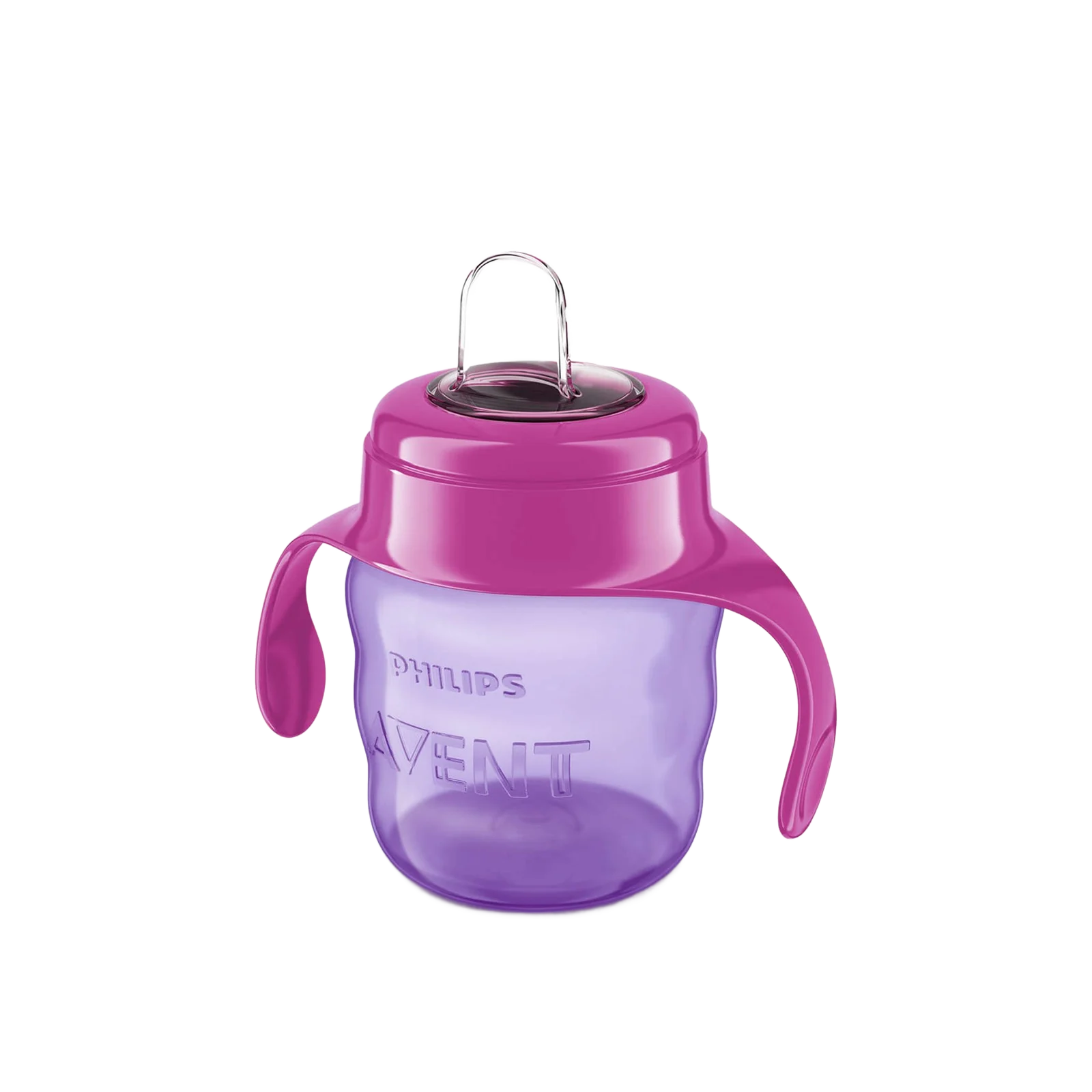 soft silicone spout, easy sipping, 200ml capacity, 6m+, pink, non-spill, removable handles
