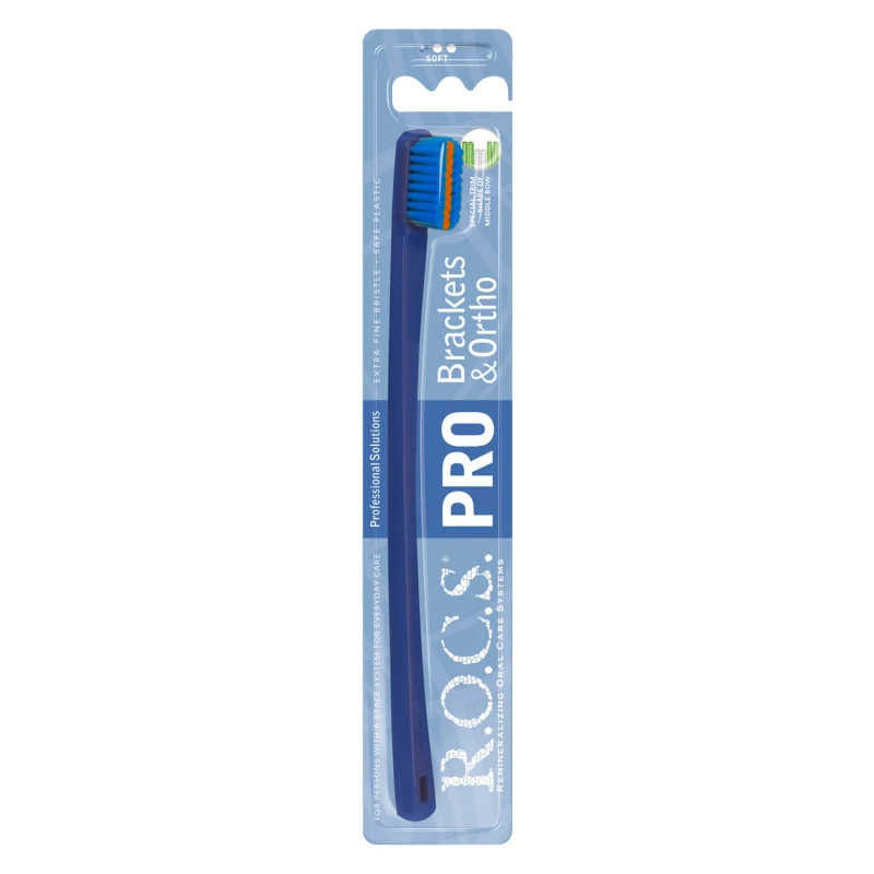 R.O.C.S. PRO Brackets & Ortho Toothbrush features a two-level bristle design and ultra-soft bristles to gently and effectively clean around braces, protecting gums and orthodontic appliances for comfortable, thorough oral care.