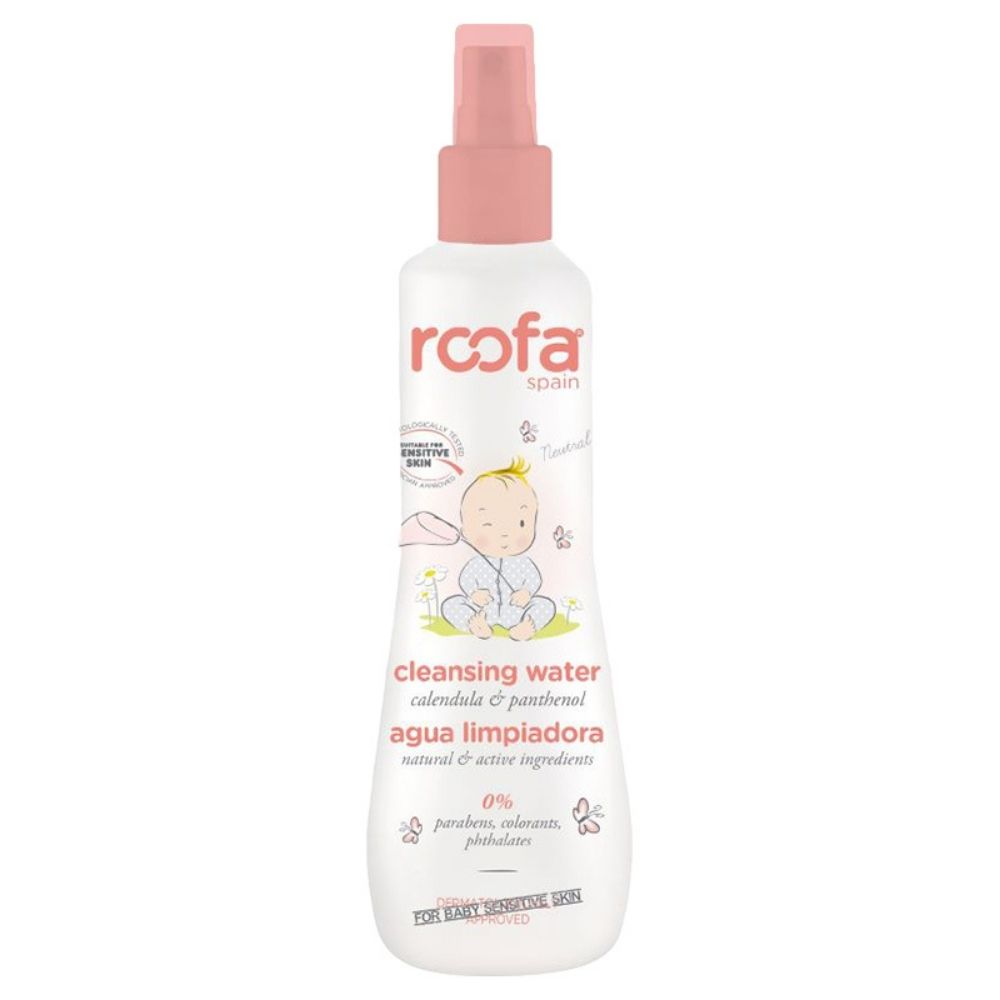 Roofa Cleansing Water 200ml is a gentle, water-based cleanser designed to deeply cleanse the skin while maintaining its hydration and elasticity. Enriched with panthenol and calendula, it soothes delicate skin without causing dryness or irritation. Free from alcohol and parabens, it is suitable for sensitive skin types.
