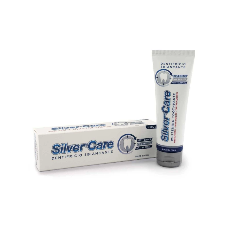 معجون أسنان سيلفر كير للتبييض مصمم باستخدام البيكربونات والسيليكا عالية التبييض لتبييض الأسنان بفعالية مع الحماية من اللويحات والتكلسات. نكهته المنعشة من النعناع تضمن نفساً منعشاً، مما يجعله خياراً مثالياً للعناية الفموية اليومية. تعمل المكونات النشطة معاً لتوفير حماية شاملة ودرجة حموضة متوازنة في تجويف الفم.