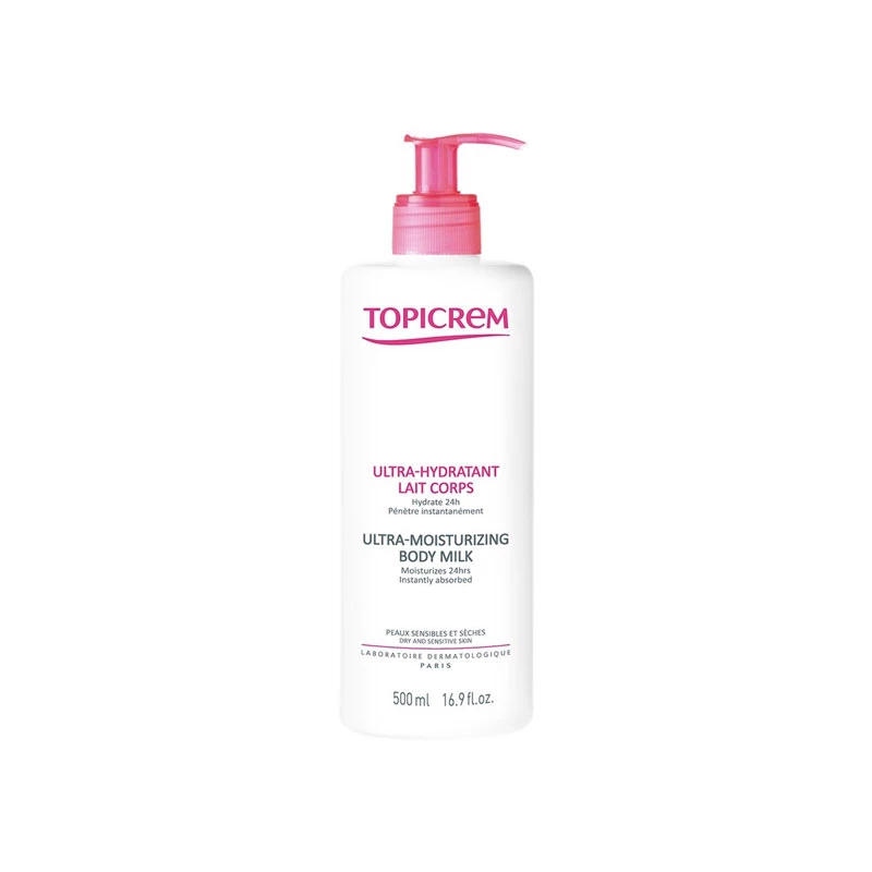 حليب الجسم Topicrem المرطب الفائق 500 مل يوفر ترطيبًا مكثفًا للبشرة الجافة والحساسة، مما يمنحك رطوبة تدوم حتى 24 ساعة. تركيبته الخفيفة وغير الدهنية تمتص بسرعة، مما يضمن أن تشعر بشرتك بالنعومة والمرونة. hypoallergenic ومناسب لجميع أنواع البشرة، هذا الحليب مثالي للاستخدام اليومي.