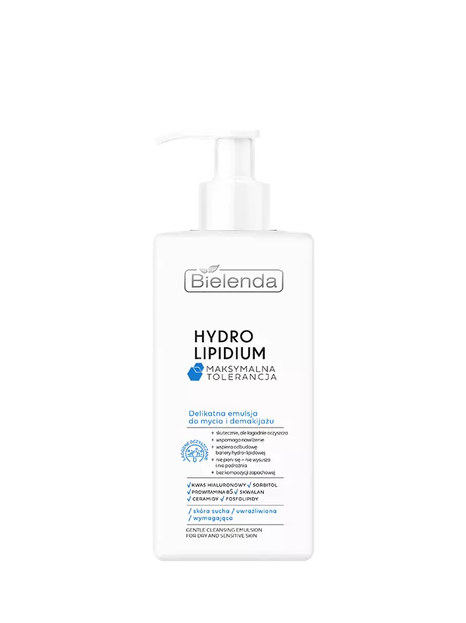 Bielenda Hydro Lipidium Gentle Cleansing Emulsion is a 300ml formula designed to effectively cleanse the skin while maintaining its natural hydro-lipid barrier. Ideal for dry and sensitive skin types, it removes impurities, excess sebum, and makeup without irritation. Enriched with hyaluronic acid and ceramides, it hydrates and soothes the skin during cleansing.
