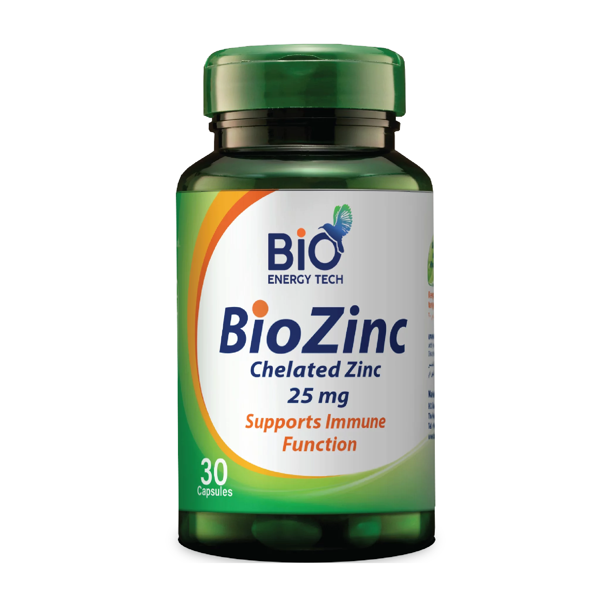 BioZinc by BioEnergyTech is a dietary supplement that provides 25 mg of Zinc Bisglycinate per capsule. It supports immune function, promotes healthy skin, and aids in men's reproductive health. Each bottle contains 30 easy-to-swallow capsules, making it a convenient addition to your daily wellness routine.