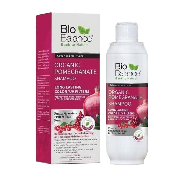 Bio Balance Organic Pomegranate Shampoo nourishes and strengthens weak, damaged, and color-treated hair. It protects against UV, heat, and chemical damage while restoring shine and vitality for healthier, more resilient hair