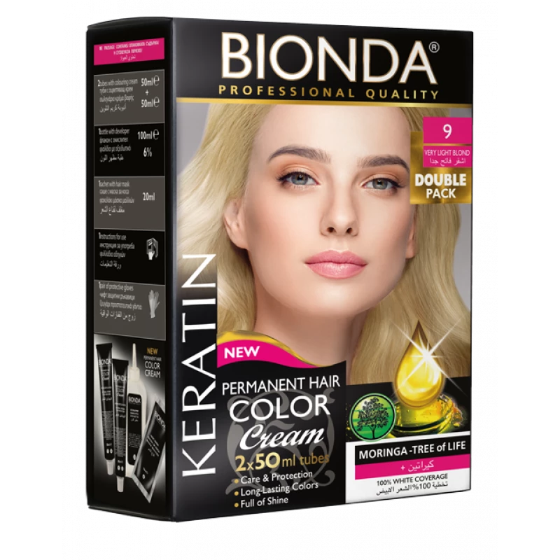 Bionda Permanent Hair Color 9 Very Light Blond Double Pack 50ml Bottles