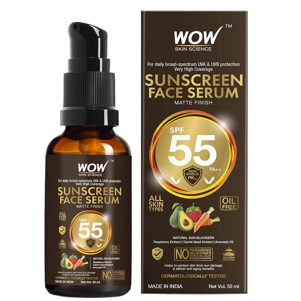 Wow SunScrean MatteFace Serum SPF55 is a lightweight, non-greasy sunscreen that provides high protection against UVA and UVB rays. Infused with natural extracts like raspberry and carrot seed, it also offers brightening and rejuvenating benefits for the skin. Ideal for daily use, this serum ensures your skin stays protected and smooth.