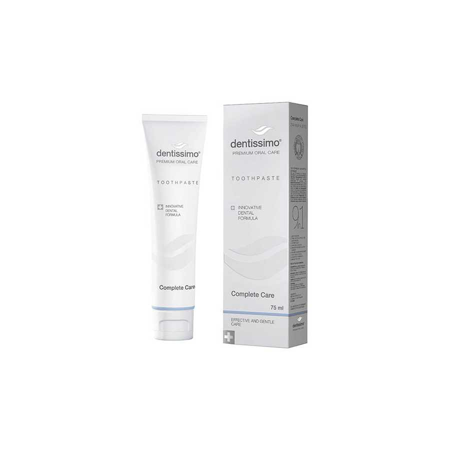 Dentissimo Complete Care Toothpaste offers comprehensive oral care, effectively protecting against cavities while strengthening enamel and promoting gum health. This 75ml toothpaste is designed for daily use, ensuring a fresh and clean mouth. Experience the benefits of a healthier smile with every brush.