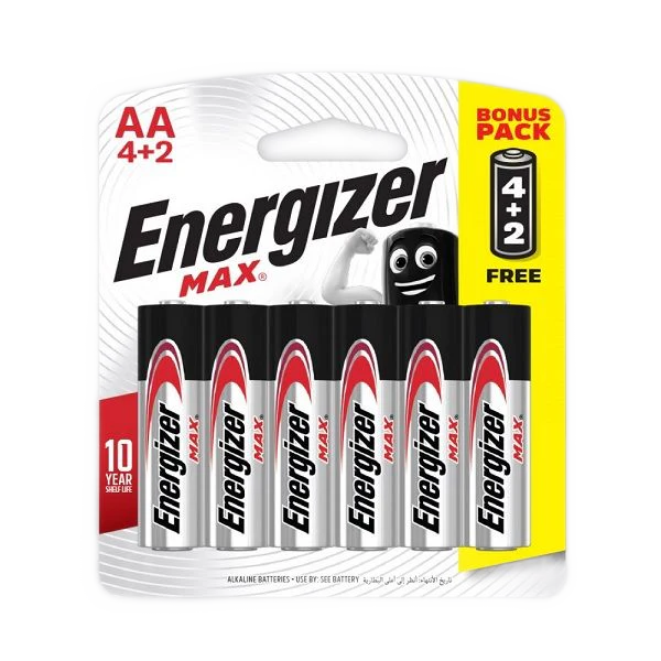 The Energizer Max AA 4+2 Free pack includes 4 high-performance AA batteries along with 2 additional batteries at no extra cost. Designed for long-lasting power, these batteries are ideal for a wide range of devices including toys, remote controls, and more. Enjoy the convenience of having extra batteries on hand for your everyday needs.