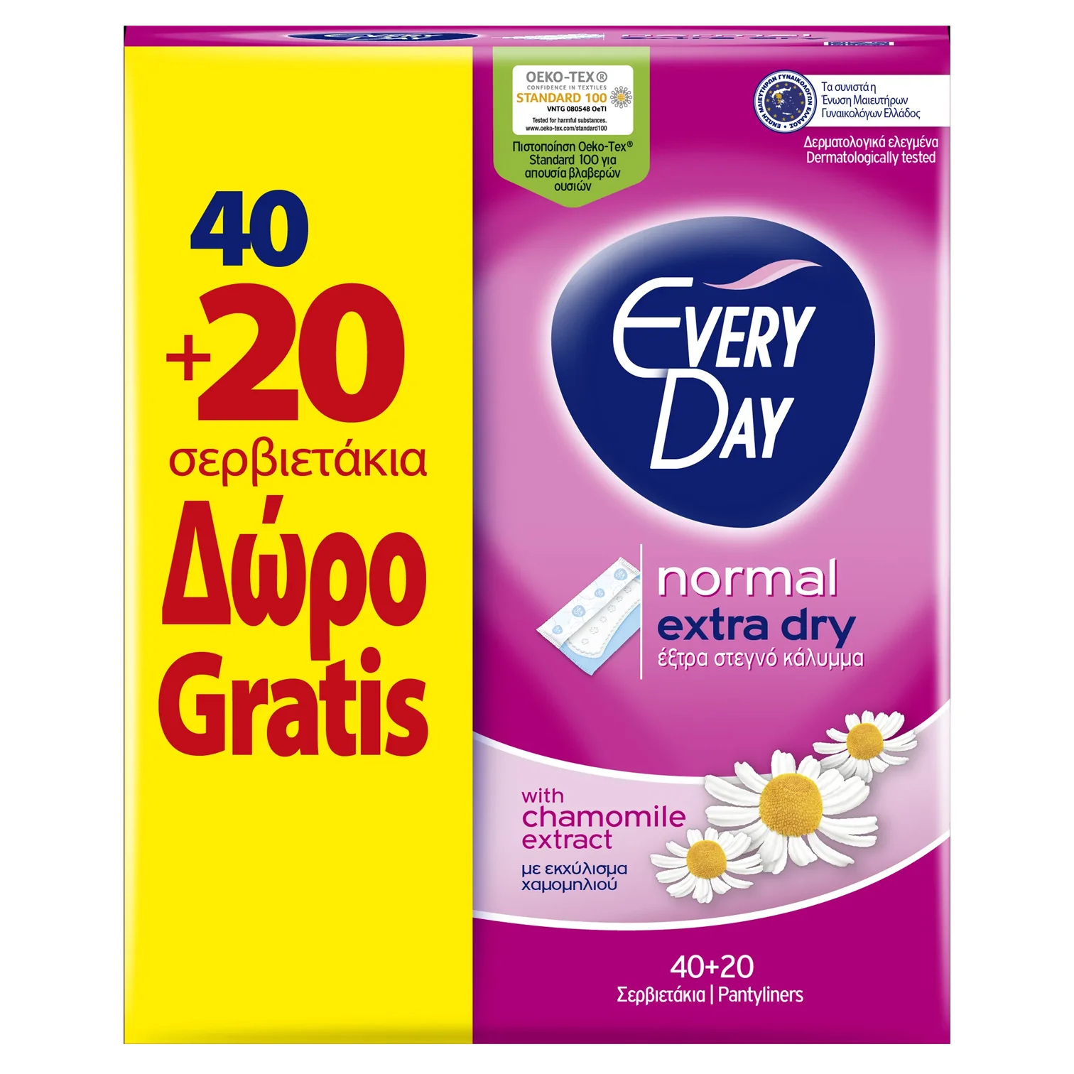 The EveryDay Extra Dry Normal 40+20 Free pack is designed for those seeking reliable and comfortable protection. This product offers enhanced absorbency, ensuring dryness and comfort throughout the day. Ideal for everyday use, it caters to normal flow needs with its extra dry technology that quickly absorbs moisture. The pack includes 40 regular units plus an additional 20 free, providing excellent value and convenience. Its discreet design allows for easy carrying and use, making it a practical choice for busy lifestyles. The EveryDay Extra Dry Normal is crafted to maintain freshness and confidence, ensuring users can go about their day without worry.
