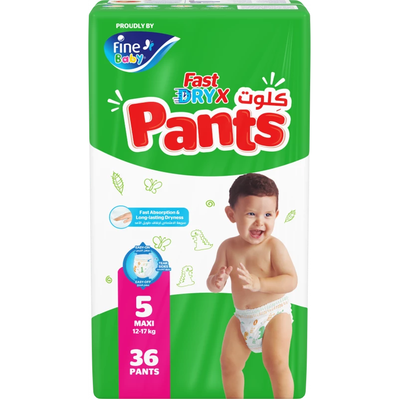 Fine Baby Pants Size 5 (36×4) are designed with advanced absorption technology to keep your baby’s skin dry and fresh for up to 12 hours.