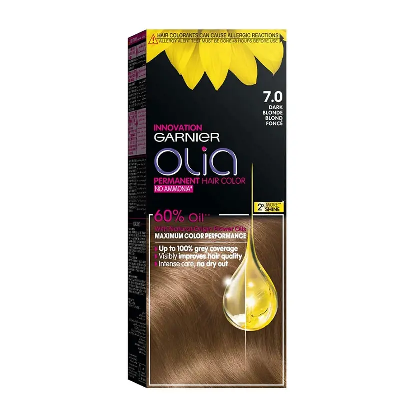 Garnier OLIA #7 Dark Blonde is an ammonia-free hair color that delivers vibrant, long-lasting results while nourishing your hair. Enriched with a 60% oil blend, it ensures a smooth application without the harsh smell of traditional dyes. Experience brilliant color and visibly healthier-looking hair with this innovative formula.