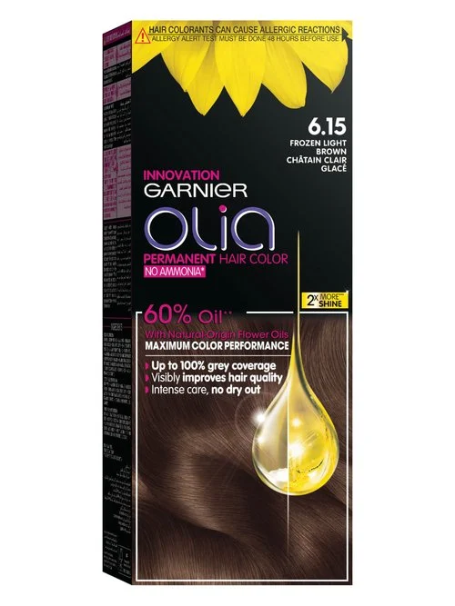 Garnier OLIA #6.15 Frozen Light Brown is an ammonia-free hair dye that provides vibrant, long-lasting color. Its unique oil-based formula nourishes hair while coloring, ensuring a smooth and shiny finish. Perfect for achieving a natural-looking light brown shade with subtle icy undertones.