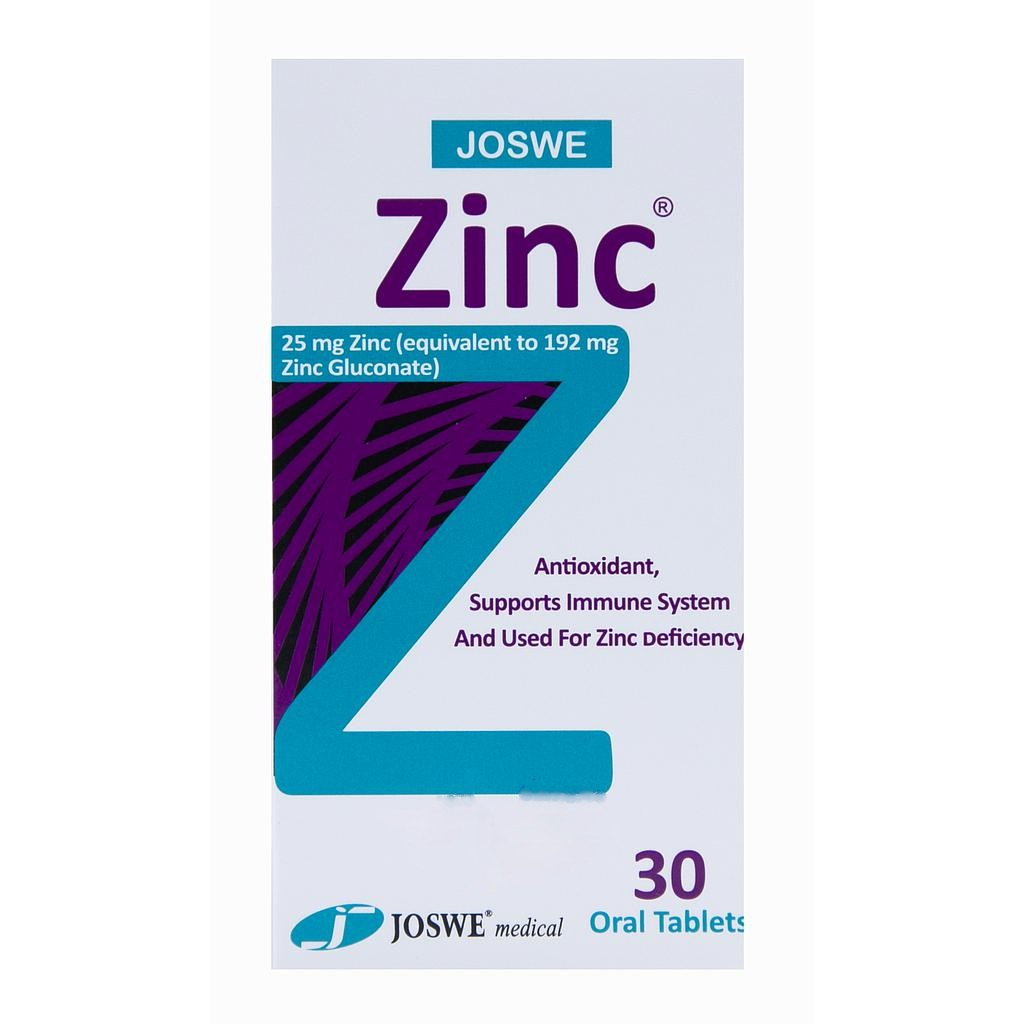 Joswe Zinc 25mg provides a potent dose of zinc to support immune function and overall health. Each tablet contains 25mg of zinc, essential for various bodily processes. This product comes in a convenient box of 30 tablets, making it easy to incorporate into your daily routine.