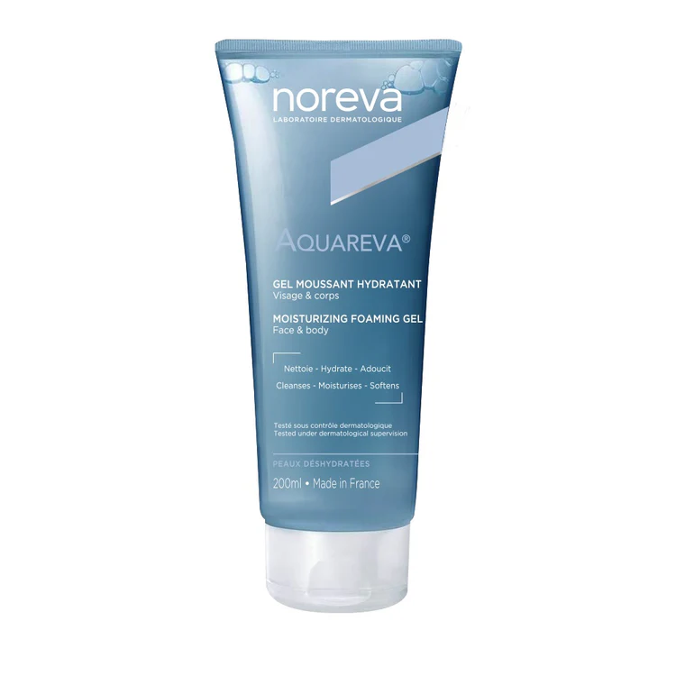 Noreva Aquareva Moisturizing Foaming Gel is specially formulated to cleanse and hydrate dehydrated skin, making it suitable for both facial and body use. This 200ml foaming gel features glacial water beads that deliver long-lasting hydration, ensuring your skin feels refreshed and revitalized. Enriched with nourishing macadamia oil, it soothes and softens the skin, providing essential moisture. The innovative DEFENS B peptide works to strengthen the skin barrier, helping to prevent further dehydration. For optimal results, apply a small amount to damp skin, gently massage, and rinse thoroughly. This product is ideal for anyone seeking a gentle yet effective cleansing solution that enhances skin hydration and comfort.