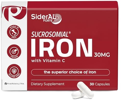 SiderAL® Forte is a dietary supplement formulated with 30 mg of Sucrosomial® Iron and 70 mg of Vitamin C per capsule, designed to optimize iron absorption while reducing gastrointestinal discomfort often associated with iron supplements. The inclusion of Vitamin C enhances the bioavailability of iron, making it an effective choice for individuals seeking to improve their iron levels without the usual side effects. This supplement is particularly beneficial for those with nutritional deficiencies or increased iron needs, such as athletes or individuals with specific dietary restrictions. The Sucrosomial® technology ensures that the iron is delivered efficiently to the body, maximizing its benefits. SiderAL® Forte is a convenient option for maintaining optimal iron levels, supporting overall health and well-being.