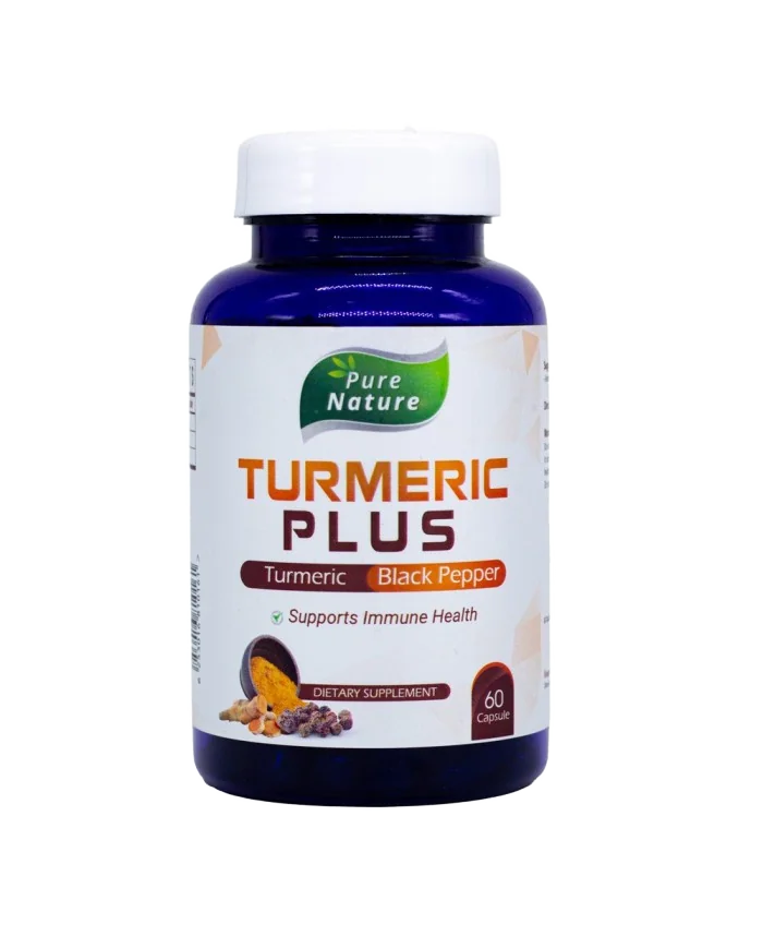 Turmeric Plus 600mg by Pure Nature offers a potent dose of 600 mg of turmeric per capsule, with a total of 60 capsules in each bottle. Turmeric is widely recognized for its active compound, curcumin, which is known for its antioxidant and anti-inflammatory properties. This supplement is designed to support joint health, boost immunity, and promote overall wellness. Ideal for individuals looking to incorporate the benefits of turmeric into their daily routine, it is easy to swallow and can be taken with or without food. Pure Nature ensures high-quality ingredients, making this product a reliable choice for health-conscious consumers.