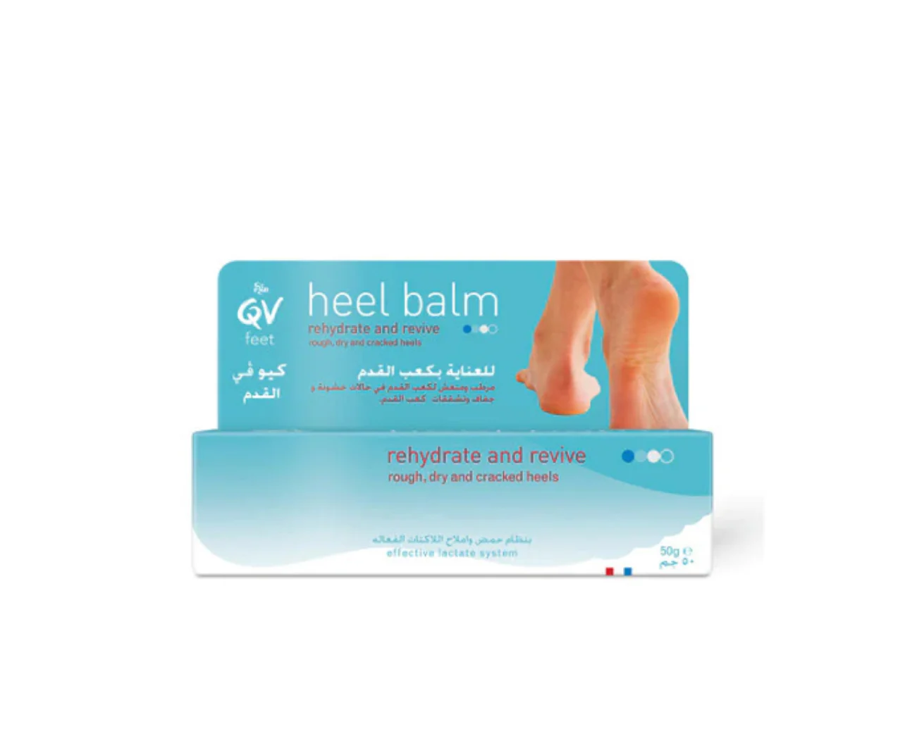 QV Heel Balm 50g is expertly formulated to rejuvenate rough, dry, and cracked heels with its unique blend of Alpha Hydroxy Acid and rich moisturizers. This balm not only softens feet but is also effective on other toughened skin areas like knees and elbows. Its low-irritant formula is free from fragrance, color, lanolin, and propylene glycol, making it suitable for sensitive skin.