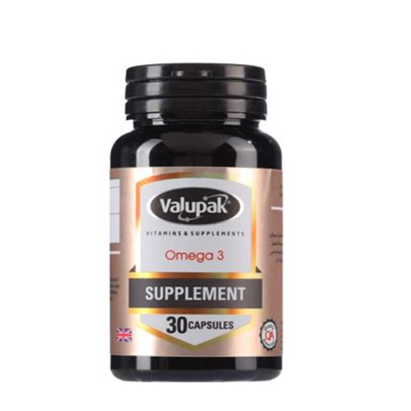 Valupak Omega-3 Fish Oil 1000mg Capsules deliver essential fatty acids EPA and DHA, promoting heart health. Each capsule contains 1000mg of fish oil, ensuring optimal support for overall wellness. Perfect for those seeking to enhance their diet with beneficial omega-3 fatty acids.
