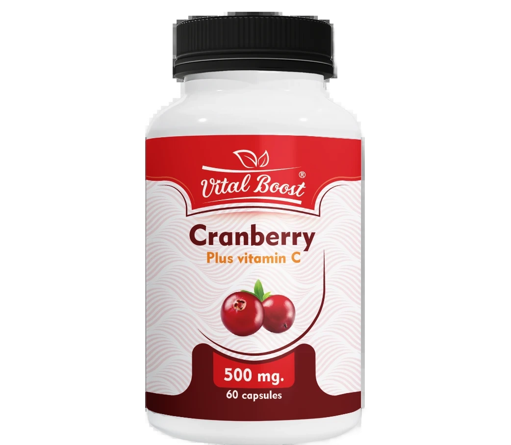 VitalBoost Cranberry Plus Vitamin C combines the power of cranberry extract with vitamin C to support urinary tract health. Each bottle contains 60 easy-to-swallow capsules, providing a convenient daily supplement. This formulation also offers antioxidant benefits, promoting overall wellness.