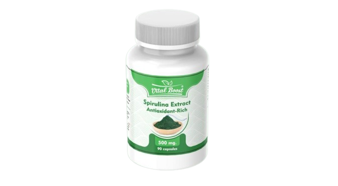 VitalBoost Spirulina Extract 500mg 90 Capsules is a dietary supplement containing spirulina extract, rich in proteins, minerals, and vitamins. It supports overall health, immunity, and boosts energy levels
