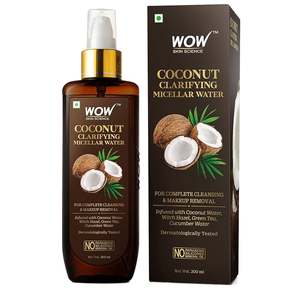 Wow Skin Science Coconut Clarifying Micellar Water is a gentle yet effective cleanser suitable for all skin types. It effortlessly removes makeup, including waterproof mascara, while hydrating and calming the skin. Infused with coconut water, witch hazel, green tea, and cucumber water, it revitalizes your complexion with every use.