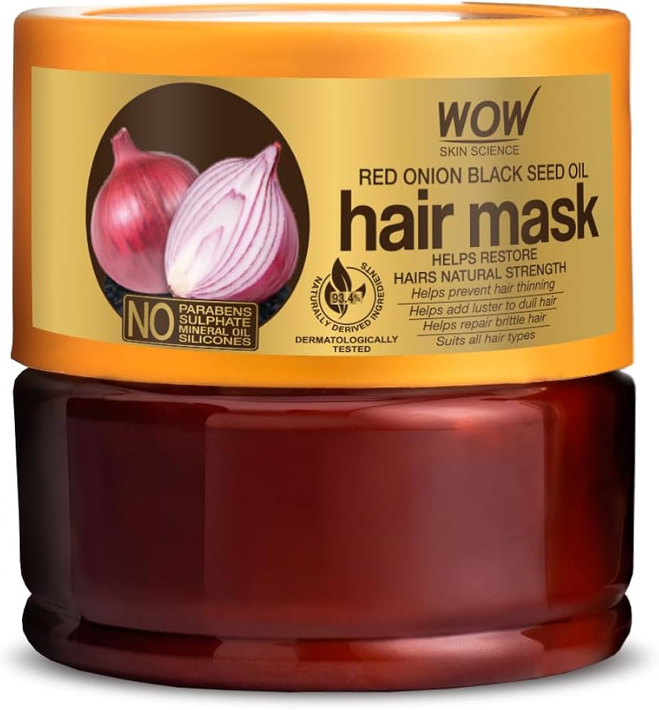 The WOW Skin Science Red Onion & Black Seed Oil Hair Mask is designed to strengthen hair, reduce breakage, and protect against damage. Enriched with red onion extract and black seed oil, it enhances hair health and adds a natural shine. Suitable for all hair types, this mask provides deep hydration for both hair and scalp.